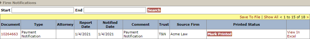 8) For additional information on the payments provided in the Payment Extract Report, the user may proceed to the Notifications page for the T&N Trust and open the report dated 1/4/2021.