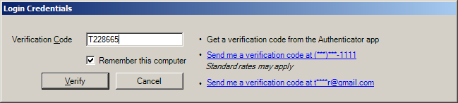 5) After receiving your code, enter it into the Verification Code field and click the Verify button. The user may also select the ‘Remember this computer’ checkbox so that they will not need to enter in a new code for 30 days.